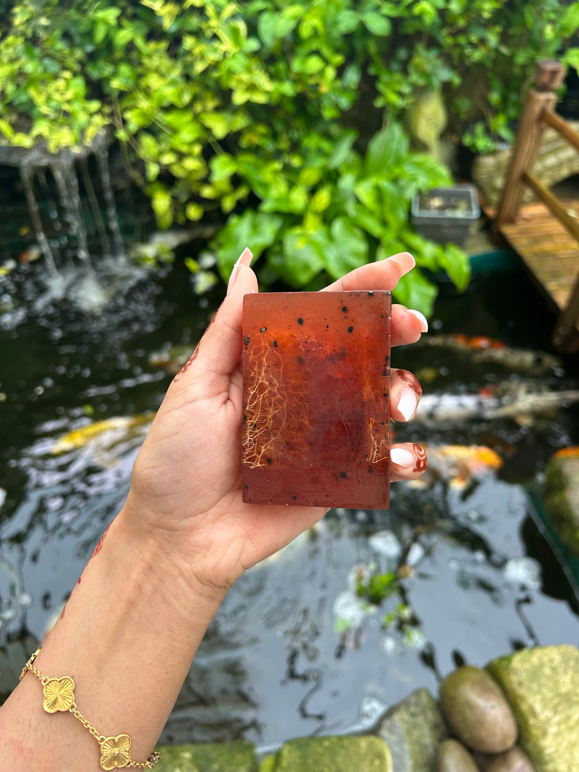 Arabian Oud soap: Veg Glycerin, Coconut Oil, Shea Butter, Pumpkin Loofa, Mother of Pearl, White Oud Essence Natural essence: Veg Glycerin, Coconut Oil, Shea Butter, Blackseed oil, Honey Comb, Pumpkin Loofa, Blackseed, Patchouli Essence